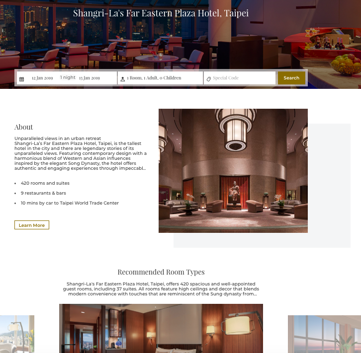 The website works like any other branded hotel’s website. Classic, clean and easy to use. I love how the rotating banner showcases images of Taipei 101 view, which is very important since this hotel is the tallest hotel in the city.