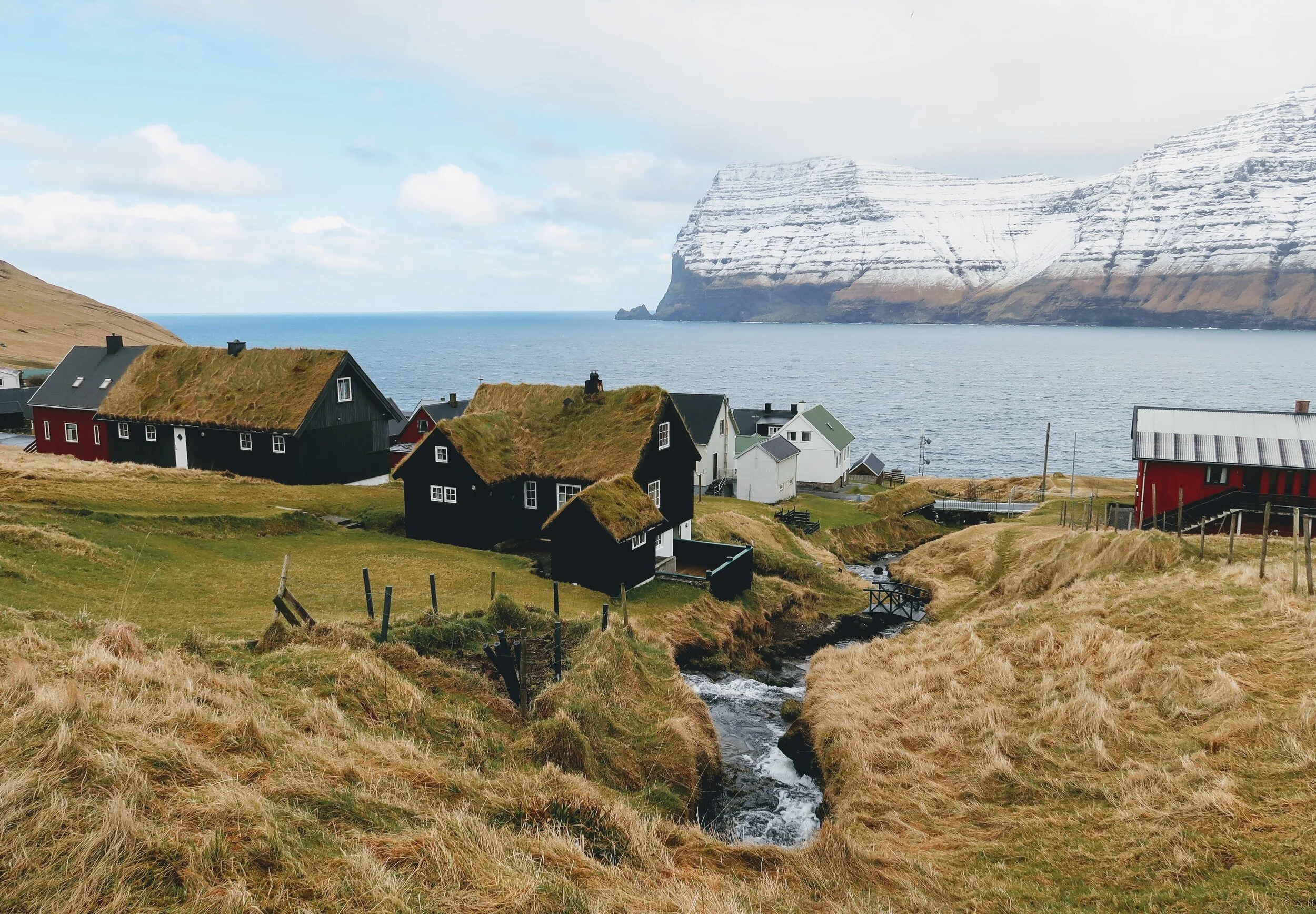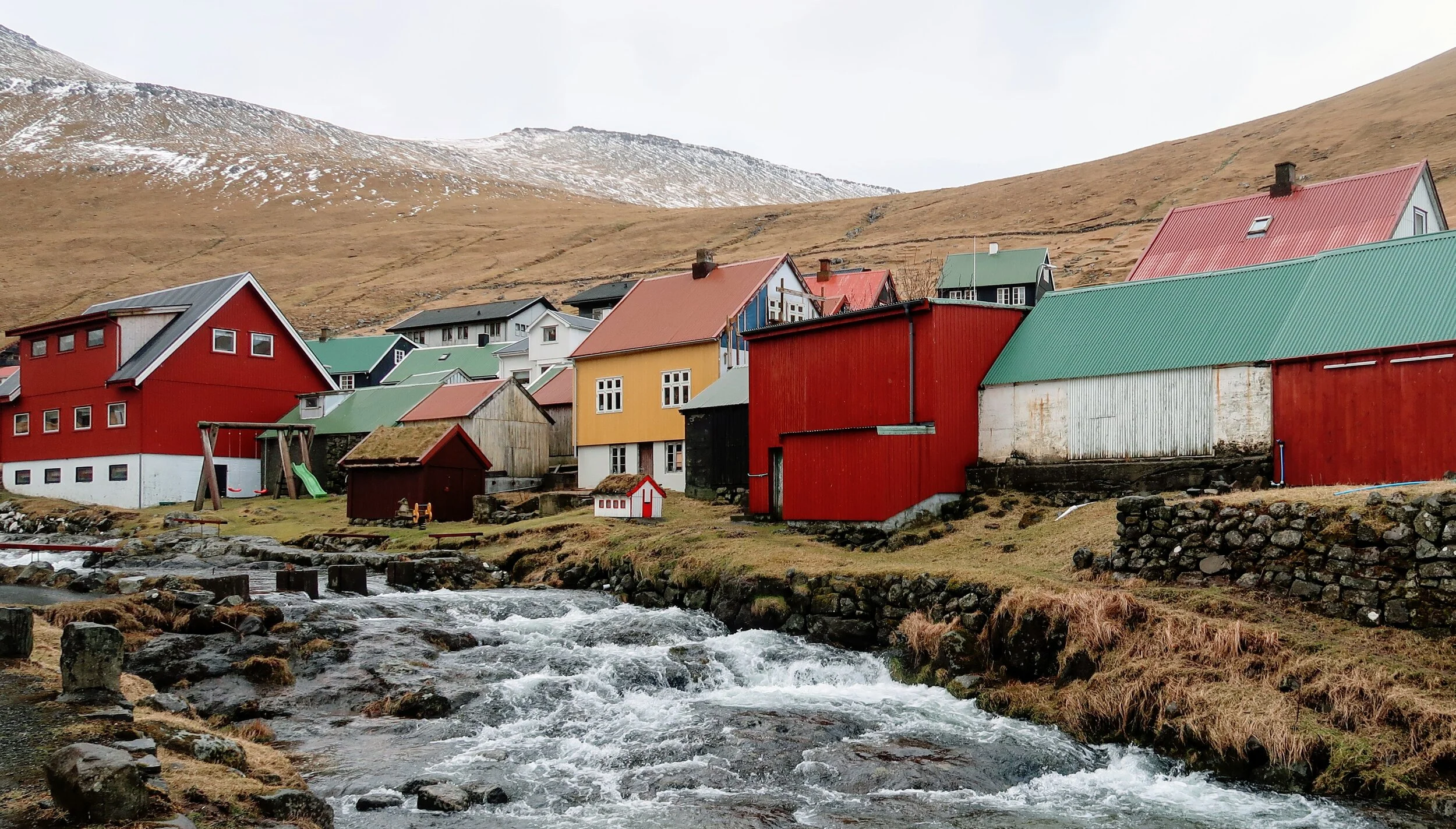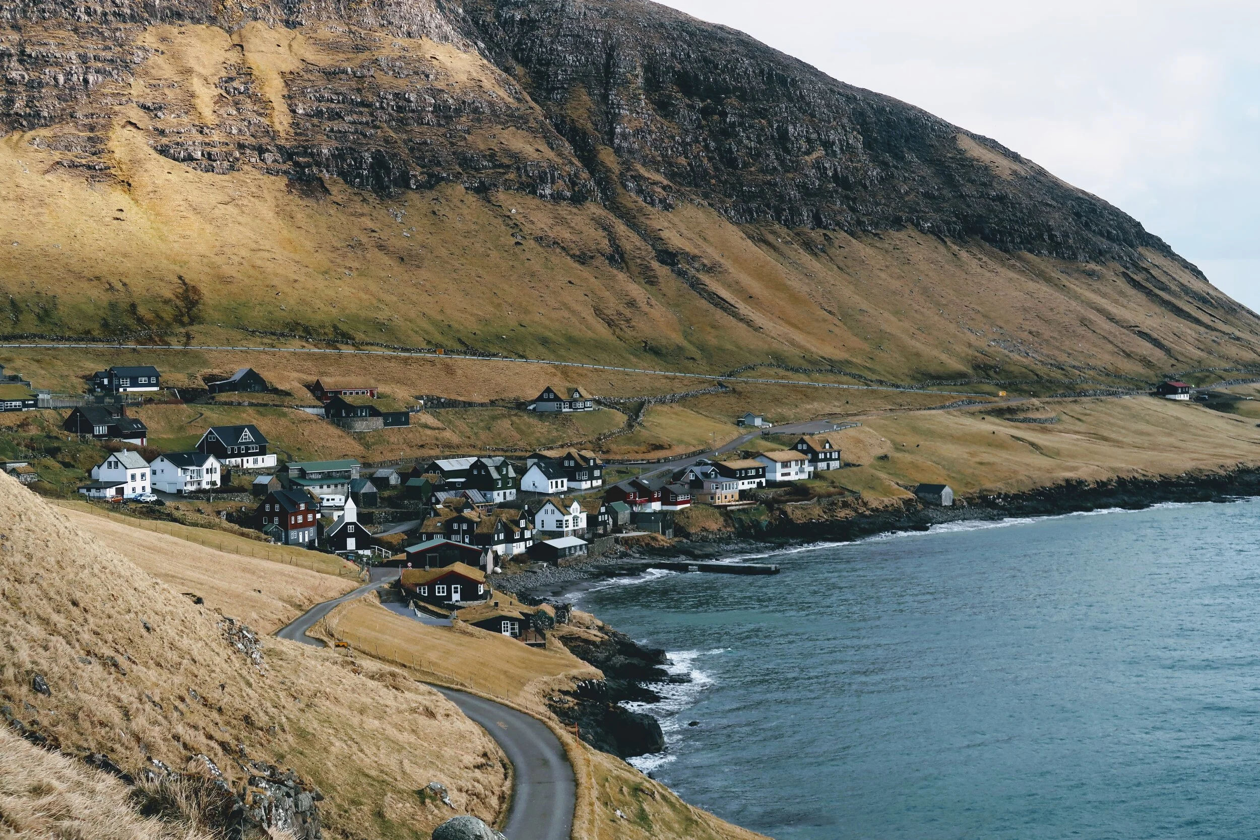 After Kallur lighthouse, I made my way down and stopped Mikladalur, which is a small town with plenty of cute houses with the infamous roof-grass that Faroe Islands is also well known for.